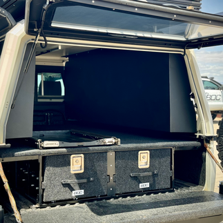 First solution he needed was storage, and boy was there enough space to let the ideas flow! We had a short time frame, but due to the limit of complete-length drawer systems on the market which fill the complete single cab bed of the Cruiser we decided to do what we do best, go custom!